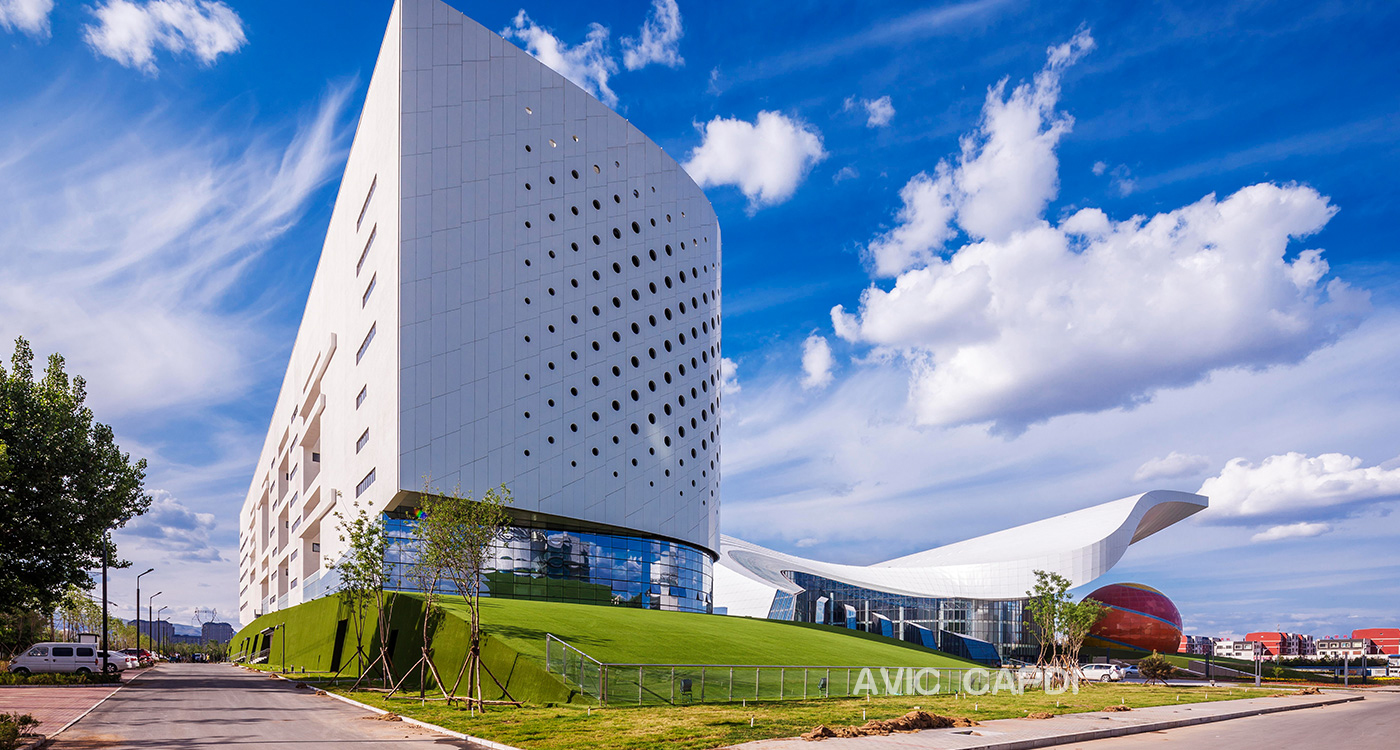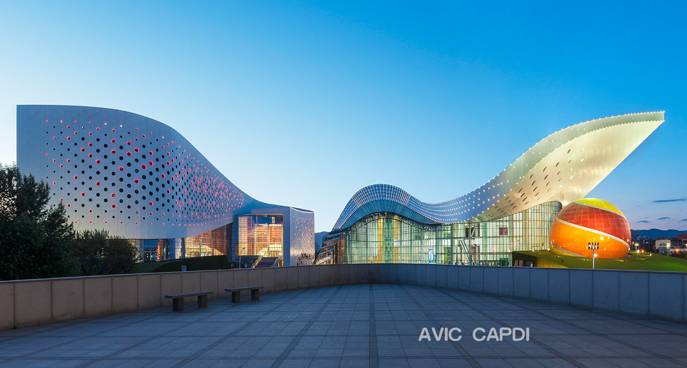 The Performance Center covers a rehearsal hall (standard 1,200-seat staging) for 9 performance groups, theater, concert hall, piano rooms, pros making rooms, costumes room, archives, storage rooms, conference rooms living services area. The "white-cloud" alike building is built from the inspiration of Inner Mongolia particular culture arts, sketching a romantic arts palace from the prairie.