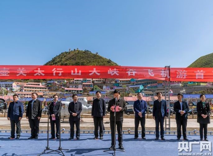 429日上午,山西長治壺關太行山大峽谷飛機游首飛儀式在壺關縣石坡鄉南坪頭塢村隆重舉行。