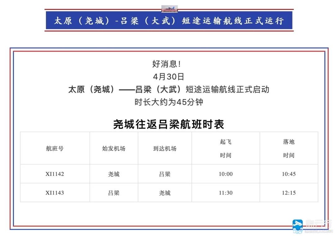 太原堯城呂梁大武航線